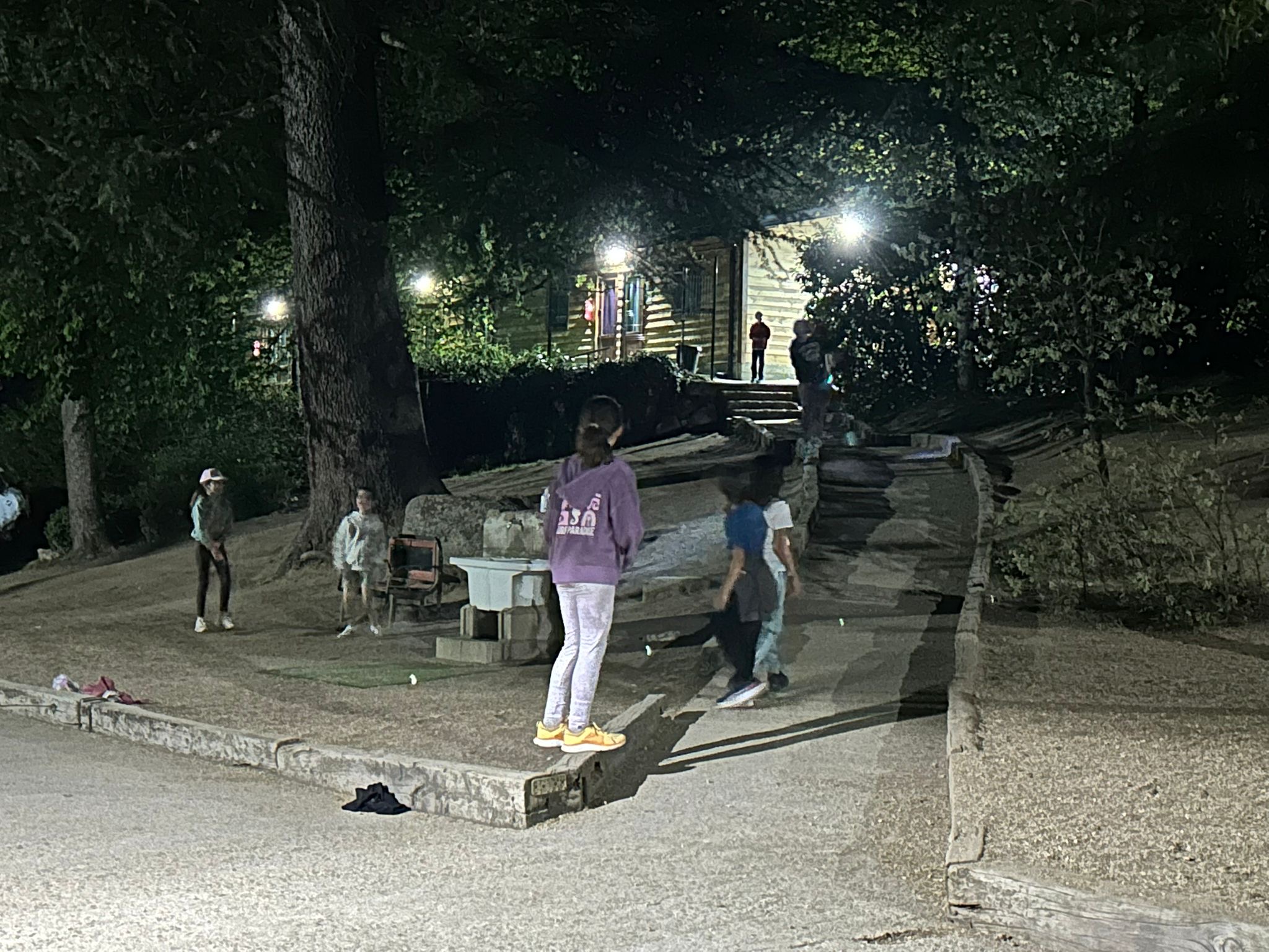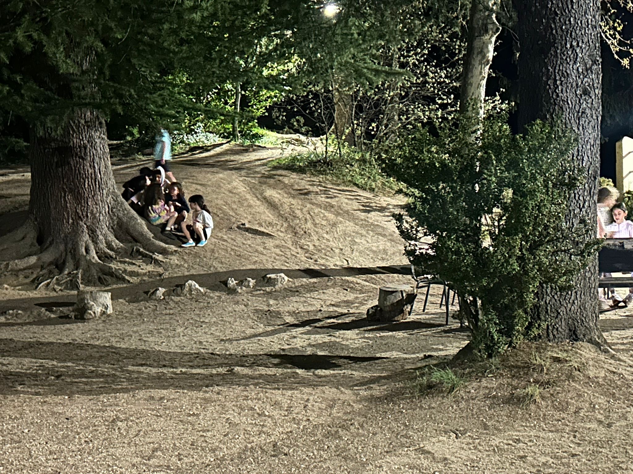 Llego la hora de la ducha calentita para relajarnos. En la cena nos dieron sopa y pizza que estaba riquísima. ¡Y llegó el momento más espera! Fiesta, música y baile en la gran velada nocturna. Más tarde… a dormir, porque hoy nos espera otro gran día!