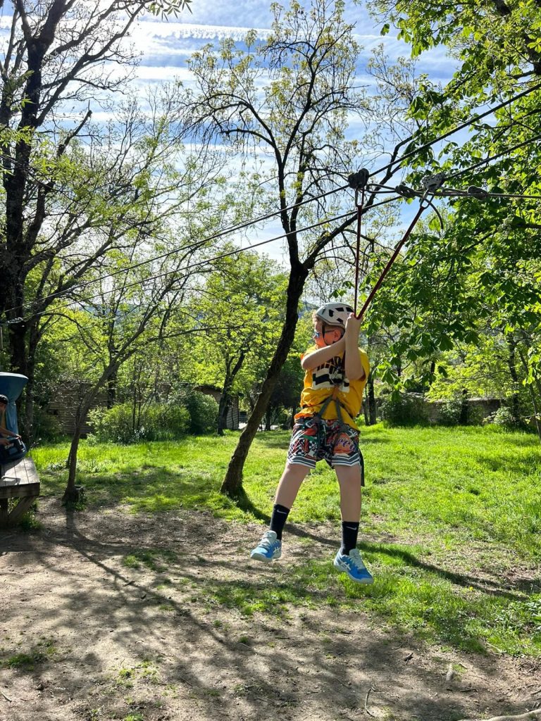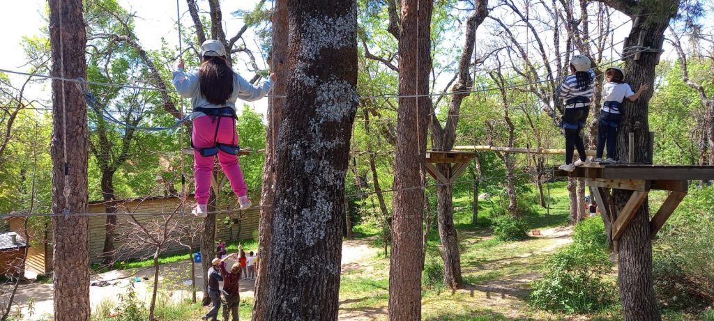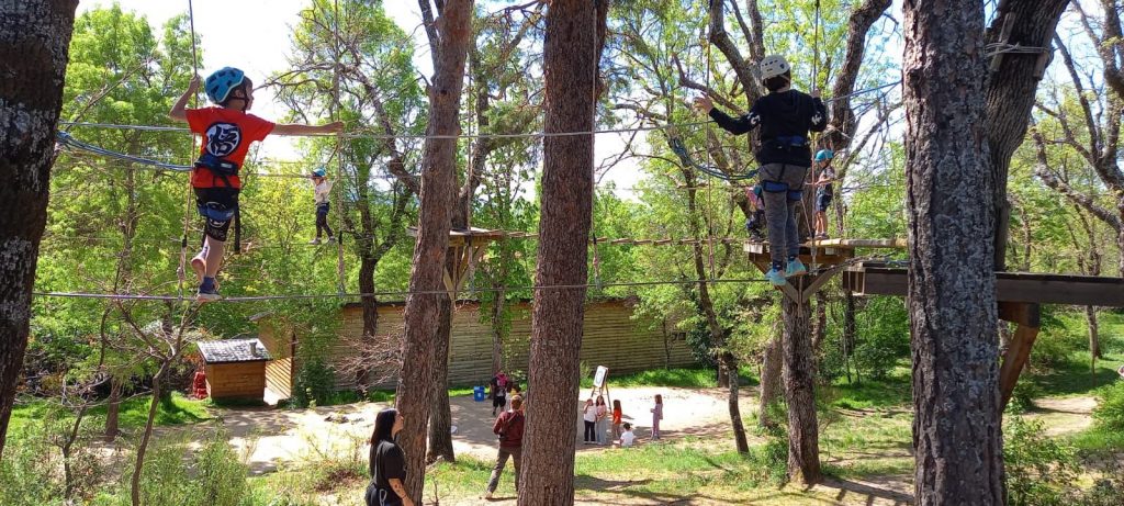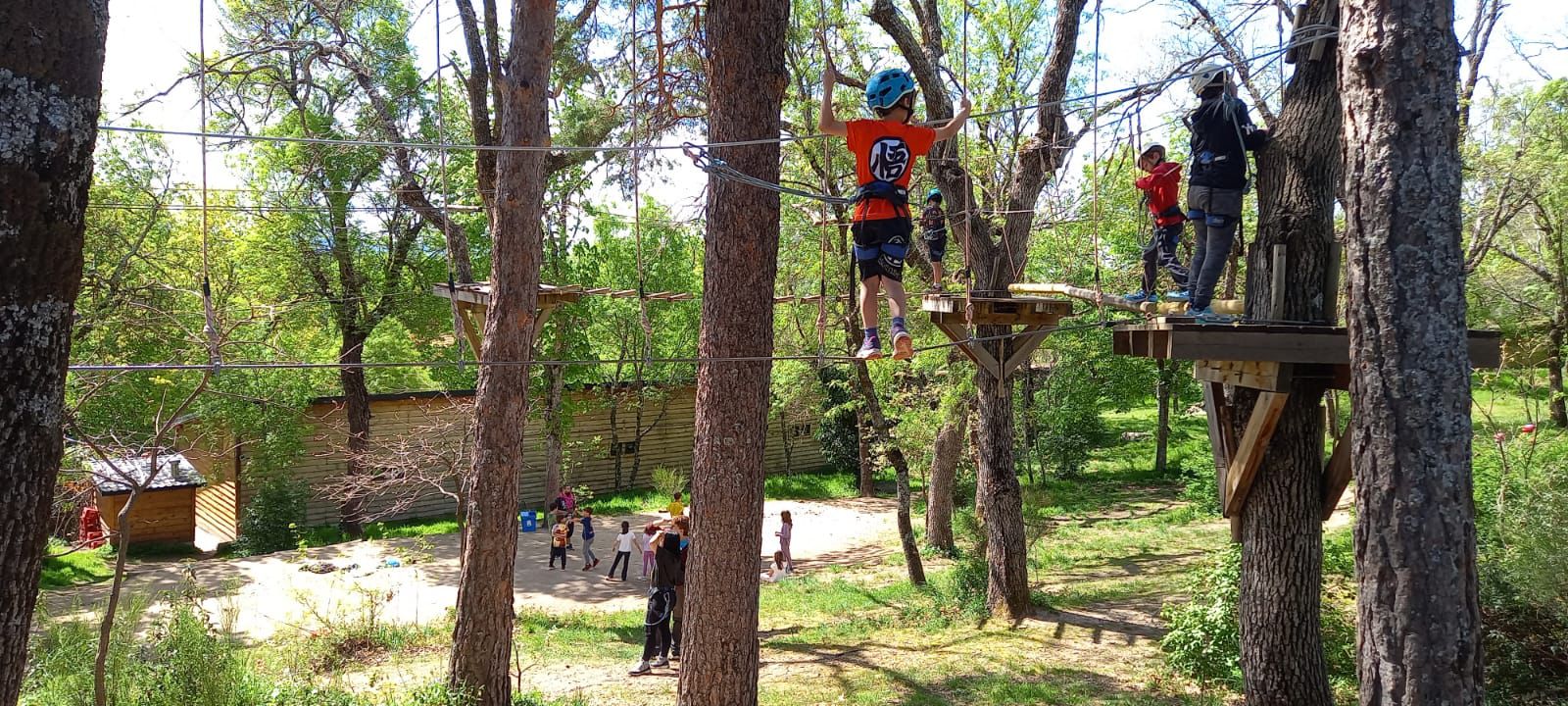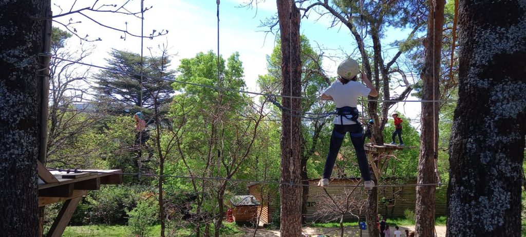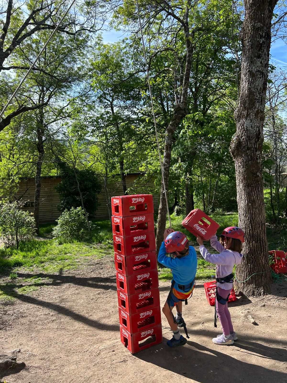 Tiro con arco, bosque suspendido, escalada en cajas, escalada en red y tirolina. Nos lo hemos pasado genial y eso que nos daba pena tener que volver a casa.