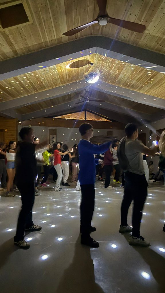 También hemos tenido momentos de movimiento y ritmo con bailes, donde los niños se han soltado, han perdido la vergüenza y han disfrutado al máximo. Después, hemos seguido superando retos con la escalada, demostrando valentía y confianza en sí mismos, y con el slackline, donde el equilibrio y la concentración han sido los grandes protagonistas. ¡Y también algunas caídas divertidas!