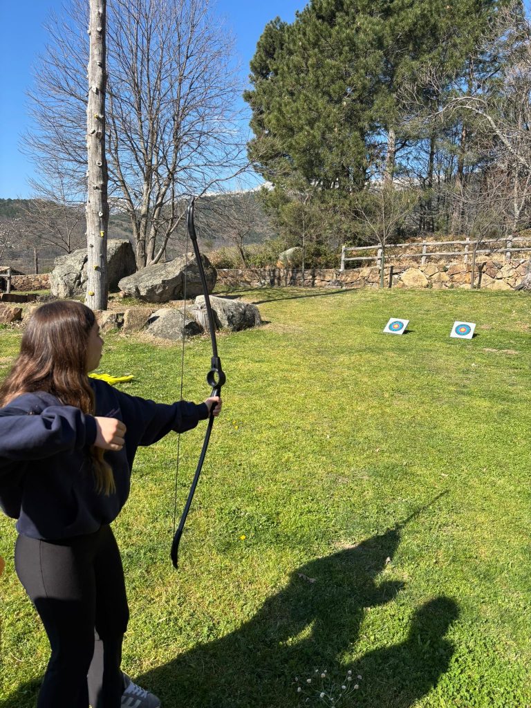 La jornada ha estado llena de actividad, risas y mucha energía desde el primer momento. Por la mañana, nos hemos convertido en auténticos aventureros probando distintas actividades como tiro con arco, donde más de uno ha descubierto su puntería secreta… ¡Y algún que otro Robin Hood en potencia!