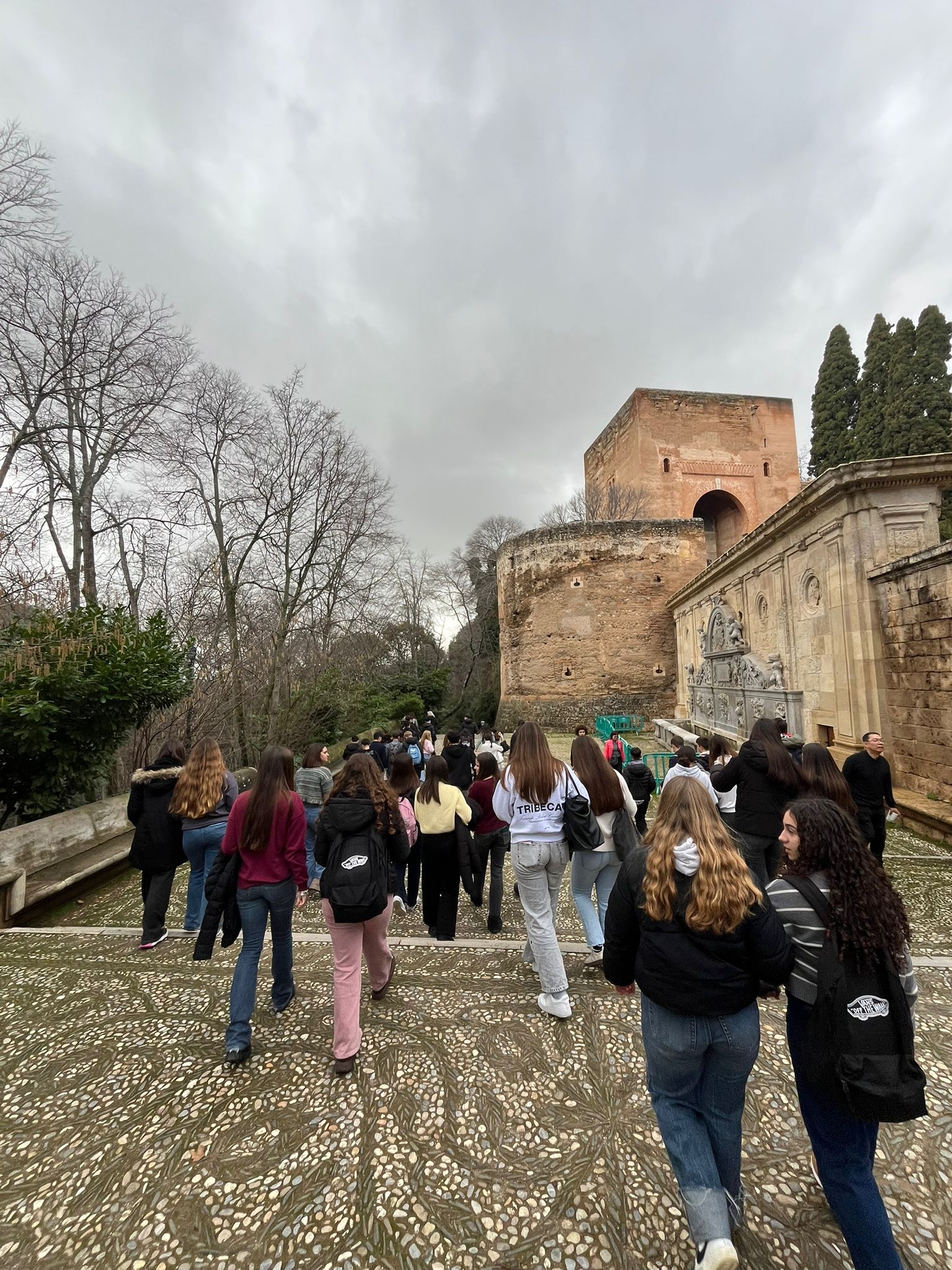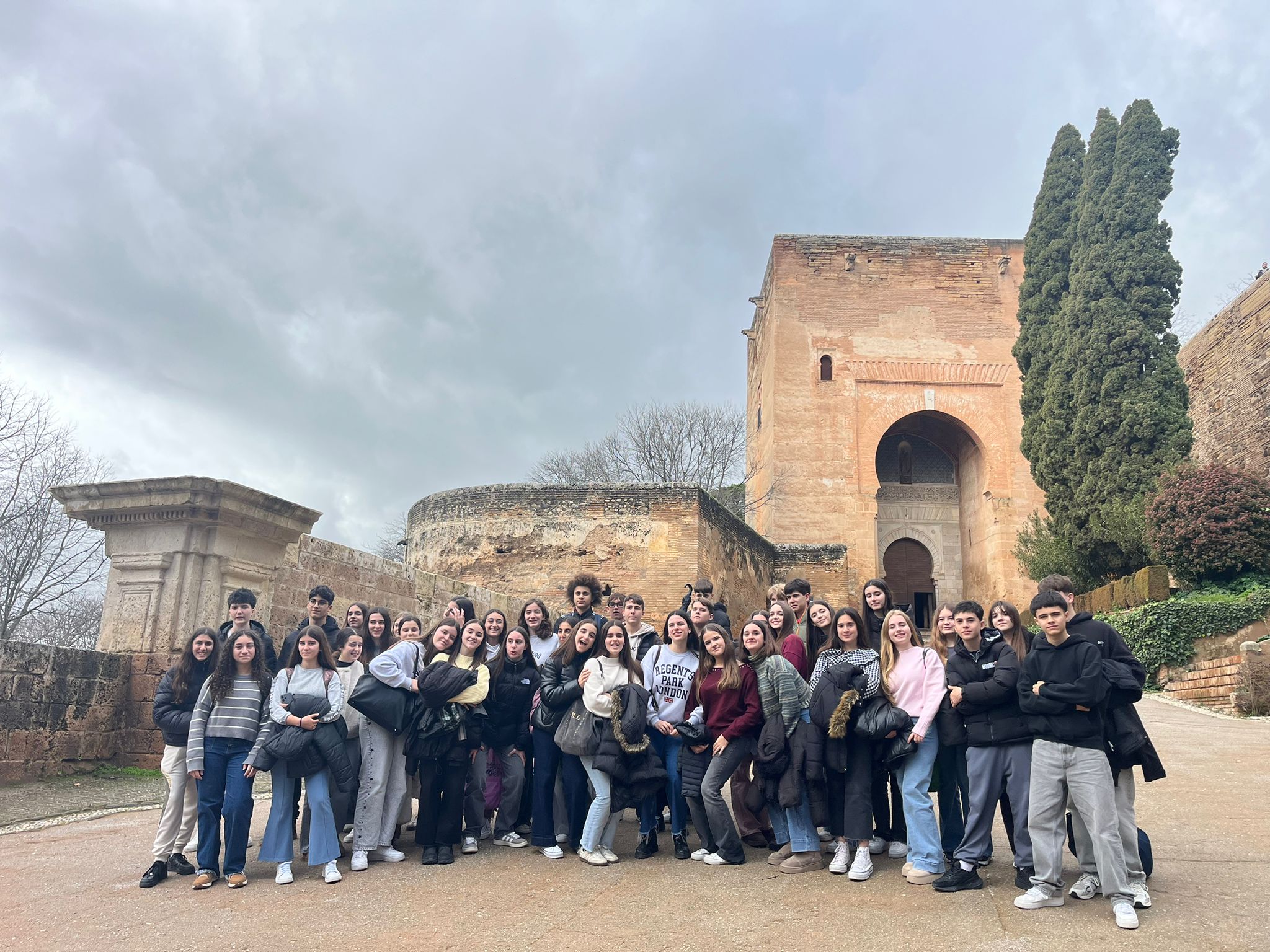 Antes de conocer el recinto y las habitaciones donde dormiremos estos días, hemos visitado La Alhambra. Al salir nos encontramos con nuestros monitores franceses que nos llevaron al mirador de San Nicolás, donde disfrutamos de las maravillosas vistas de la ciudad, donde bailamos al ritmo de una guitarra flamenca y nos sacamos muchas fotos con la Alhambra y Sierra Nevada de fondo. Al acabar, recorrimos las estrechas calles del Albaicín y terminamos en la calle de las Teterías, donde pudimos comprar algún souvenir para la familia y amigos.