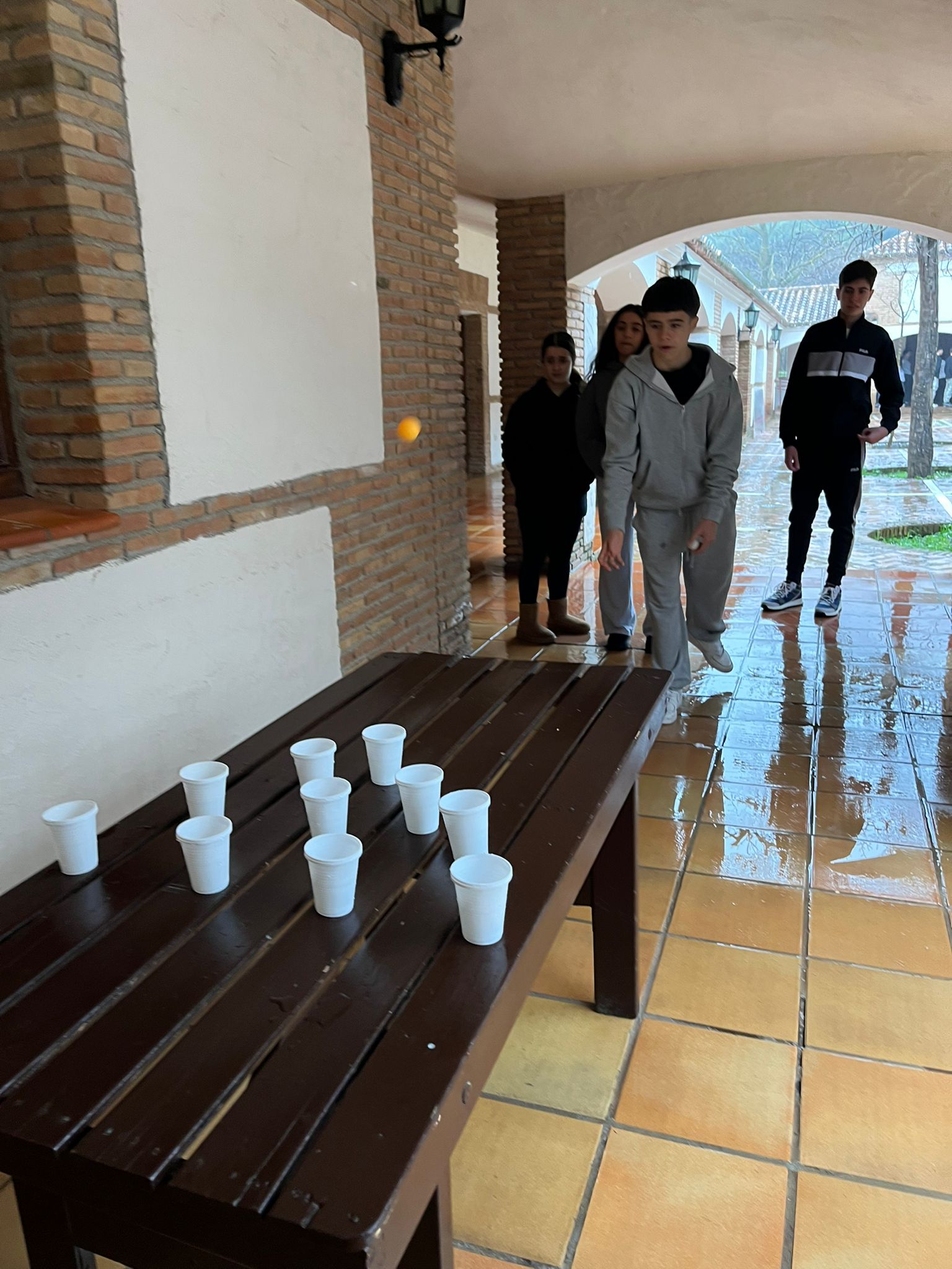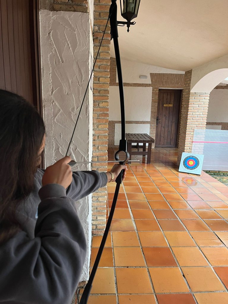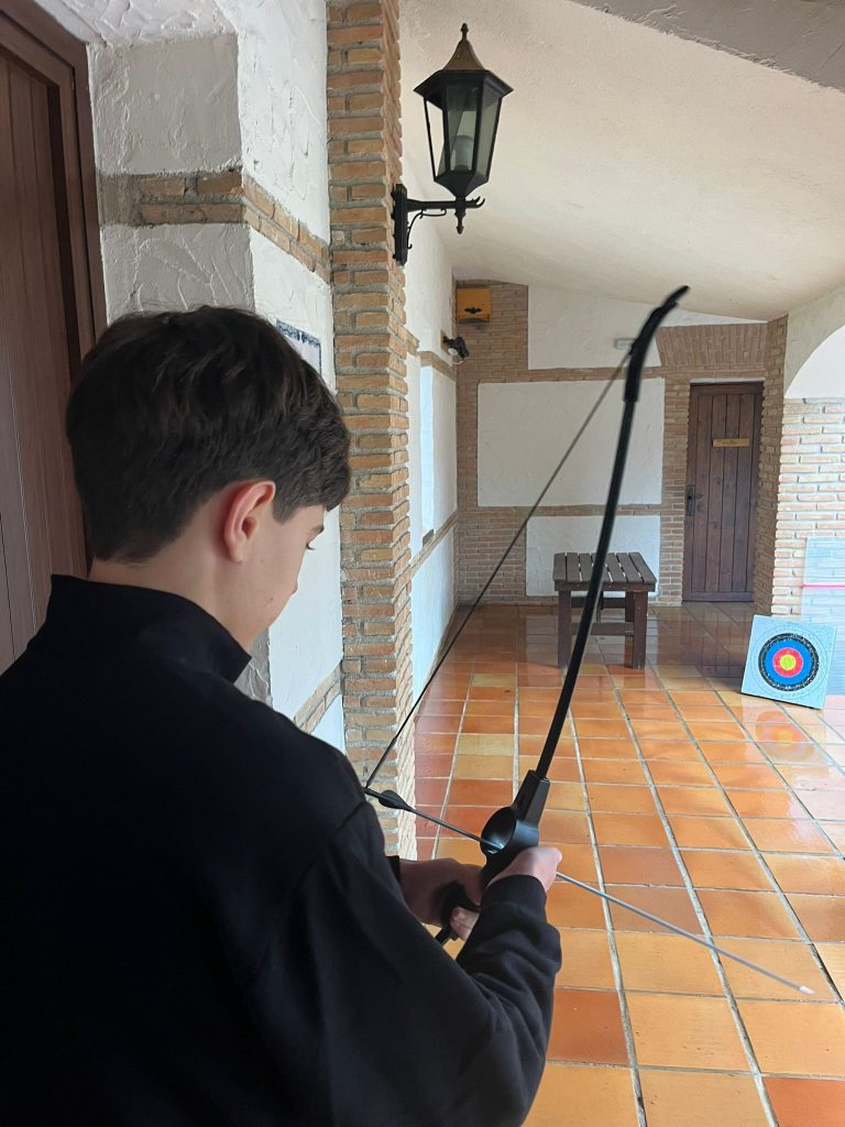 Durante la mañana tuvimos que pasar unas pruebas deportivas a cubierto, en las que nos dividimos por equipos. Practicamos tiro con arco, mini baloncesto, mini bolos y pin-pon.