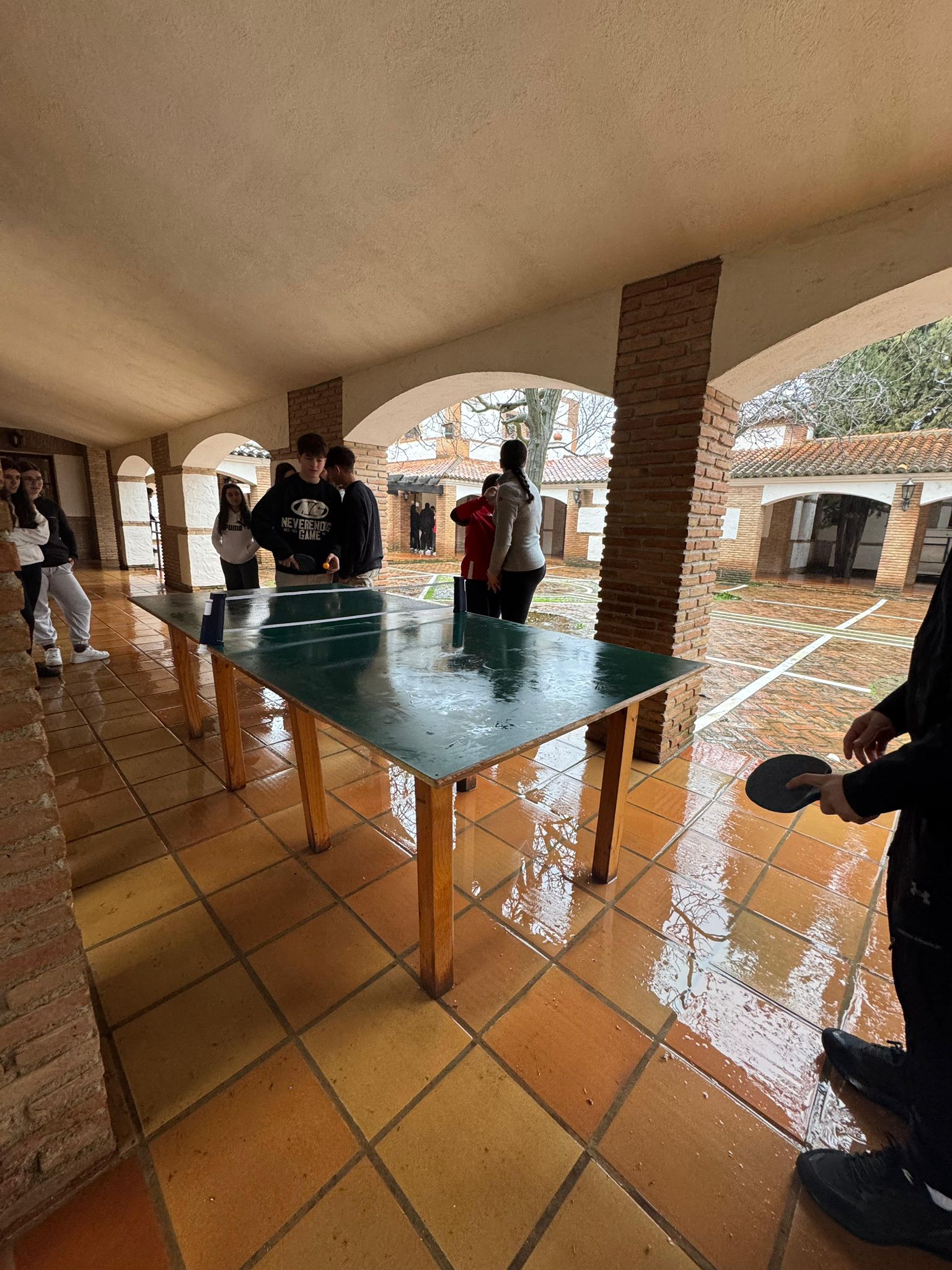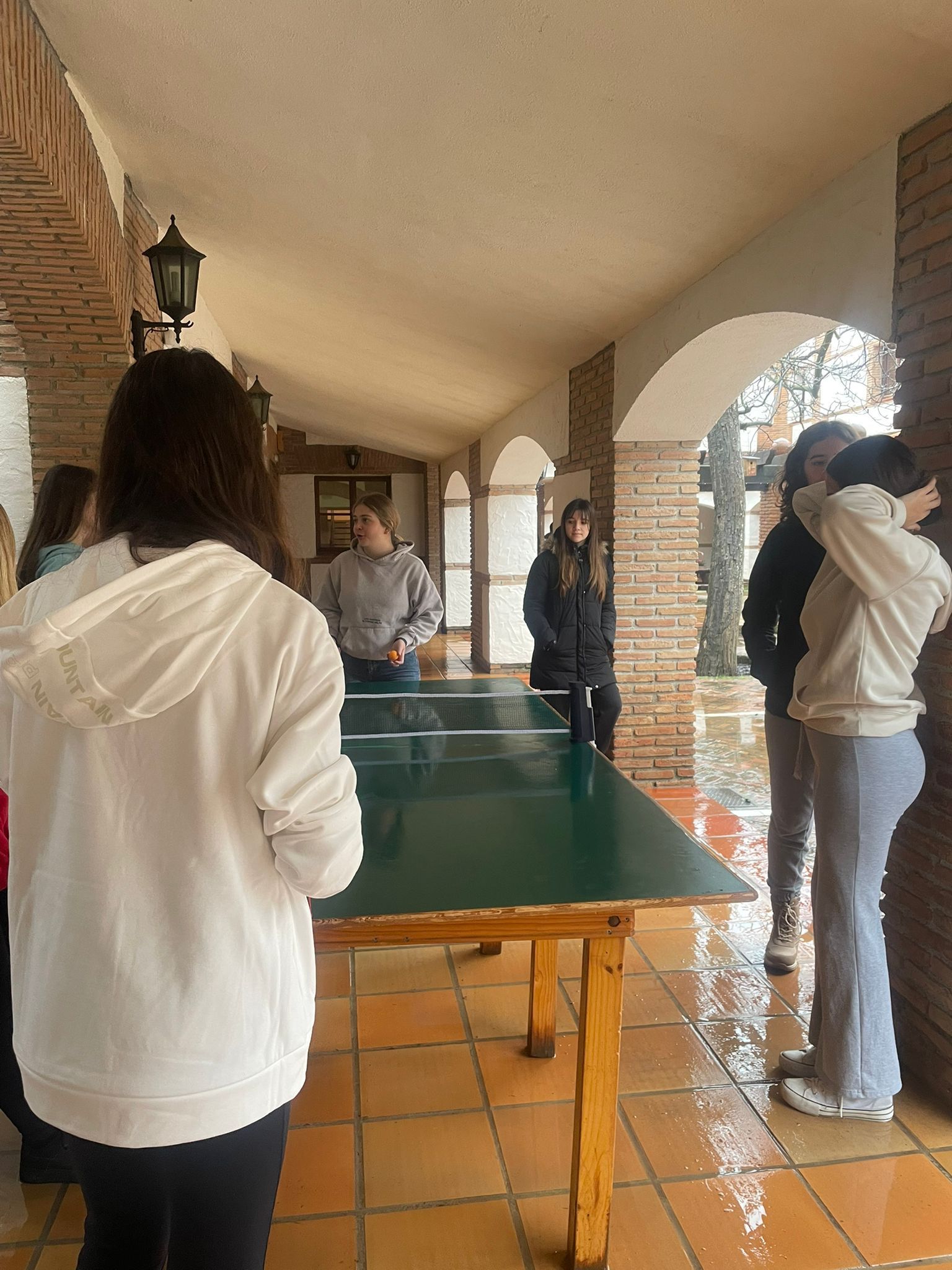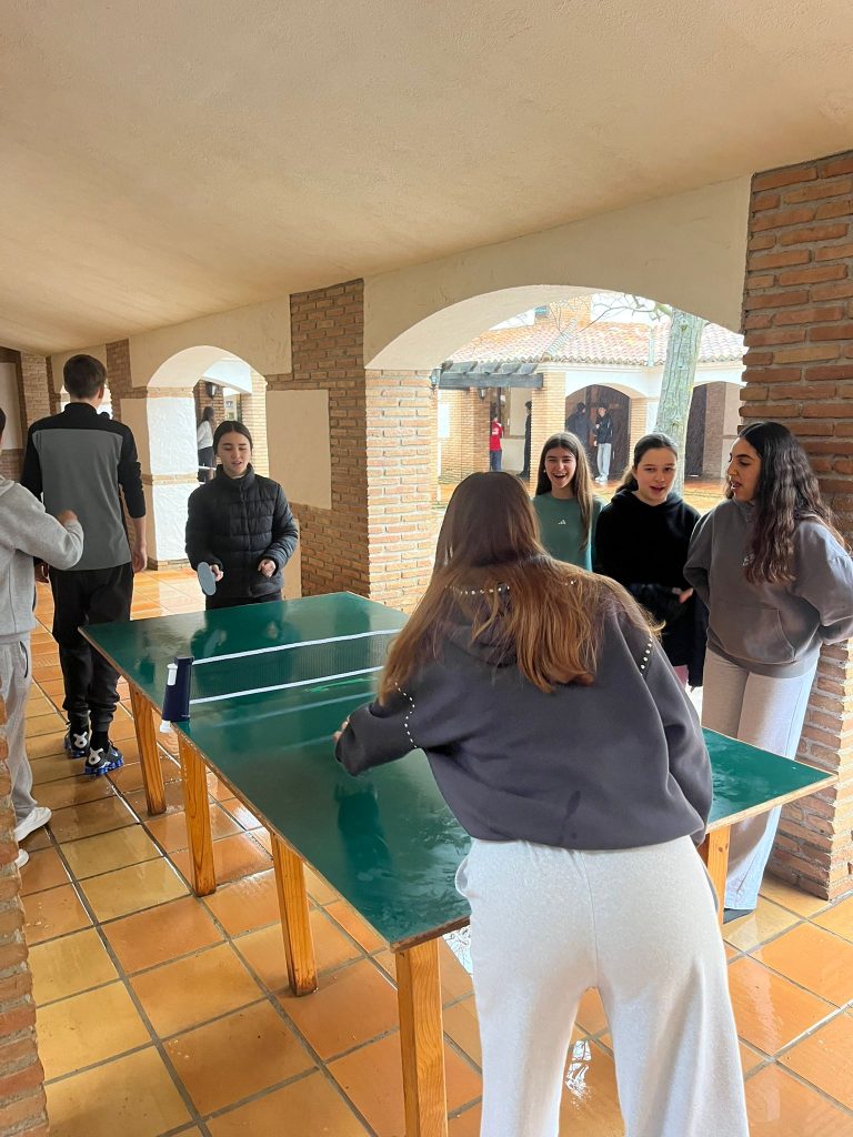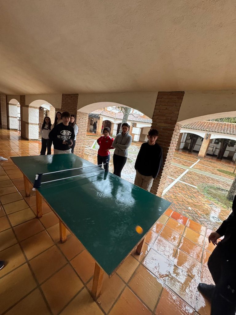Al llegar al albergue es la hora de la comida, hoy toca lentejas y chuletas. Después de la comida, un poco de tiempo libre para jugar al pin-pon y aprovechar el sol que tanta falta nos hace.