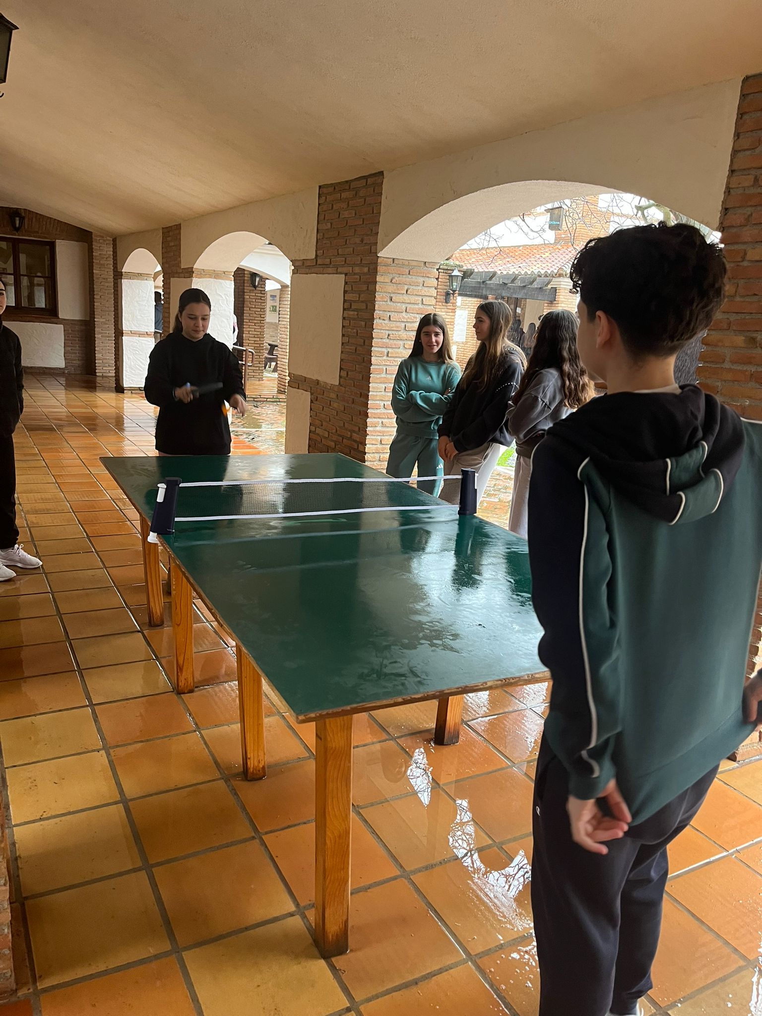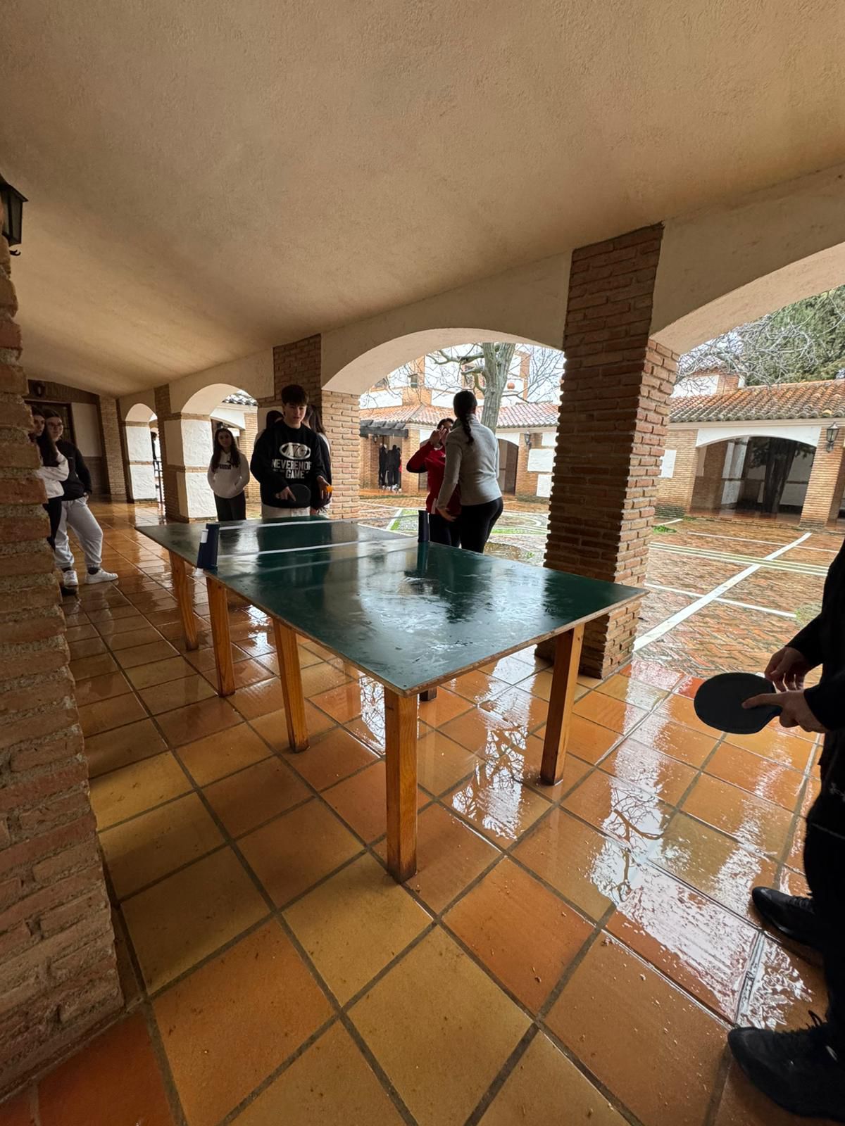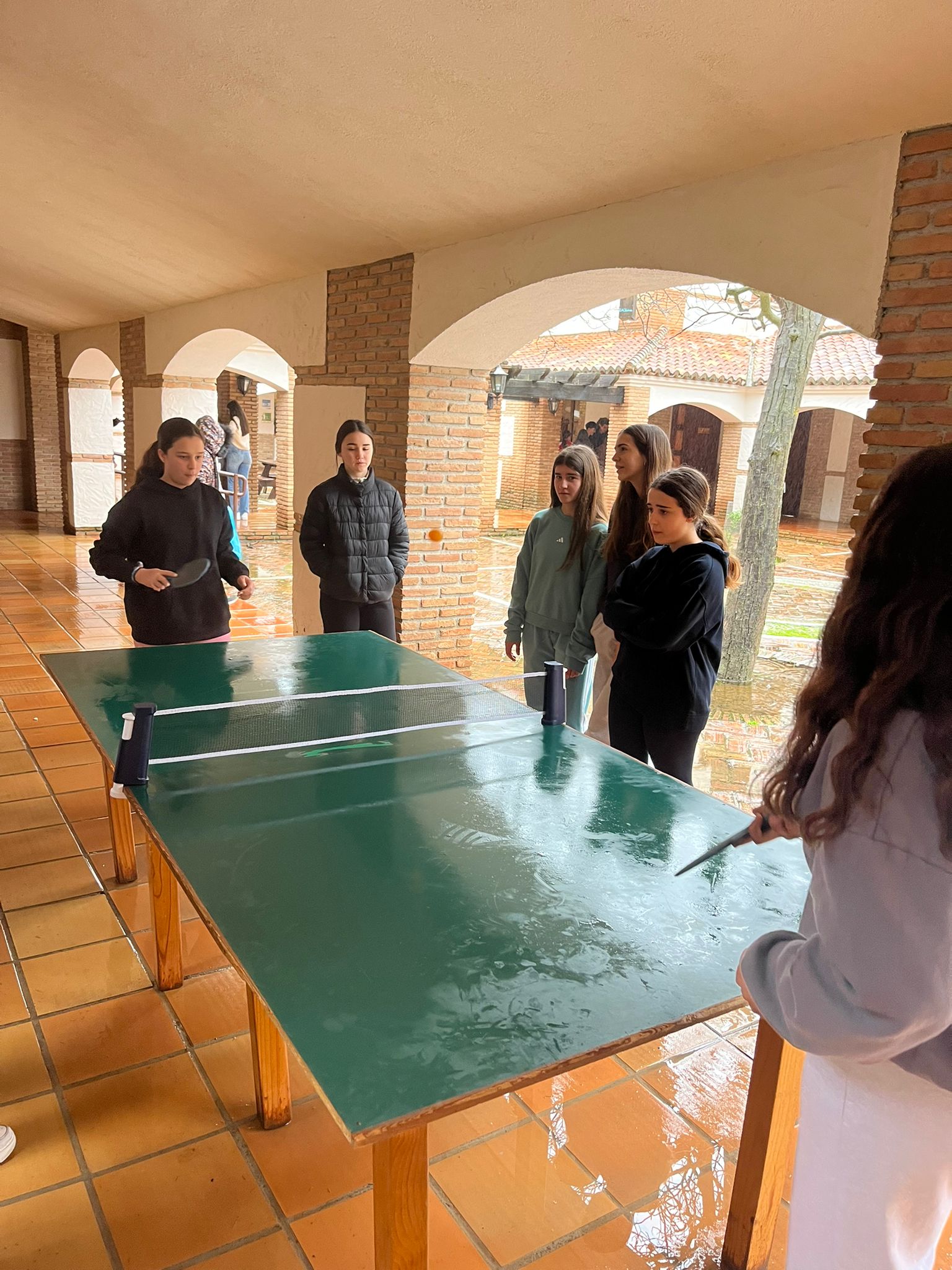 Al llegar al albergue es la hora de la comida, hoy toca lentejas y chuletas. Después de la comida, un poco de tiempo libre para jugar al pin-pon y aprovechar el sol que tanta falta nos hace.
