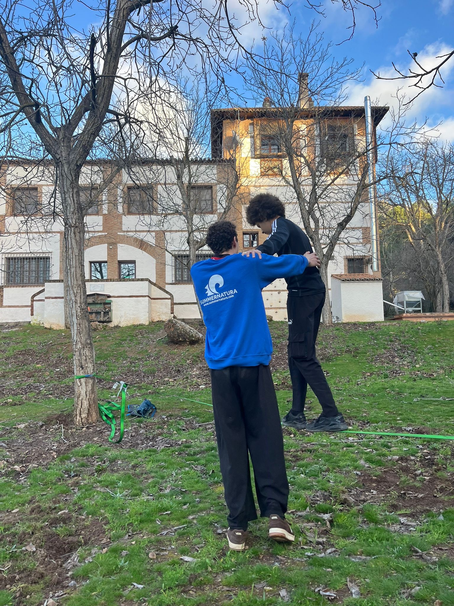 Antes de que empezara a llover nos recogió el autobús para llevarnos a nuestro destino: Dílar. Llegamos y nos encontramos un alojamiento situado en plena naturaleza donde no llega ni la cobertura, pero no pasa nada, es una semana de desconexión y disfrute del entorno. Una vez llegados al albergue, realizamos juegos de presentación muy entretenidos para ver nuestro nivel con el idioma, relajarnos y conocer a los monitores.