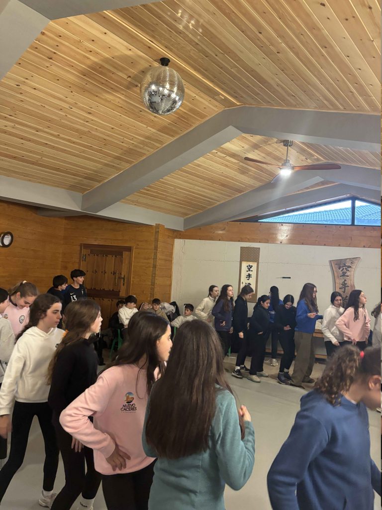Por la tarde, el grupo salió al frontón para realizar actividades al aire libre, donde se desarrollaron las Frikiolimpiadas, una dinámica en equipo pensada para moverse, cooperar y pasarlo bien. Después de la actividad, los alumnos disfrutaron de la merienda y, seguidamente, trabajaron en un proyecto en grupo, cuyo objetivo era preparar una pequeña pieza de teatro.