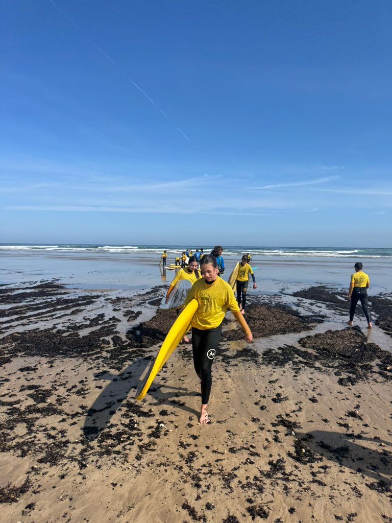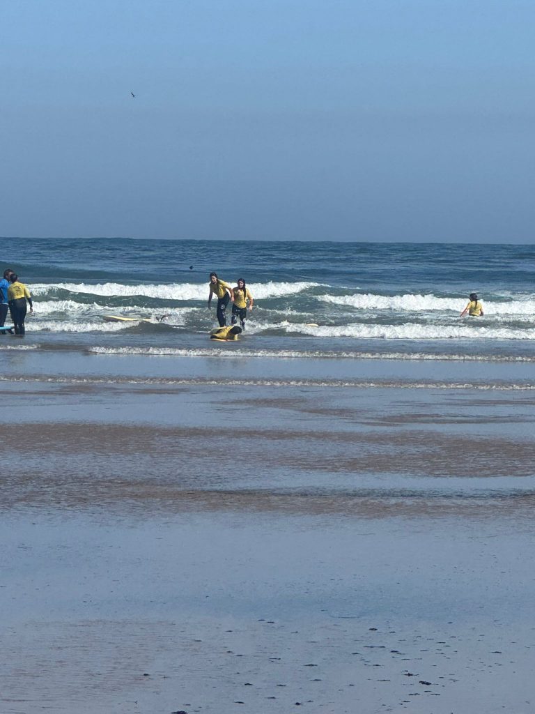 La mañana comenzó sabiendo que aún nos quedaba una última gran experiencia juntos: ¡la tercera clase de surf! Volvimos a la playa para disfrutar una vez más del mar, poner en práctica todo lo aprendido estos días y despedirnos de las olas como se merecen.
