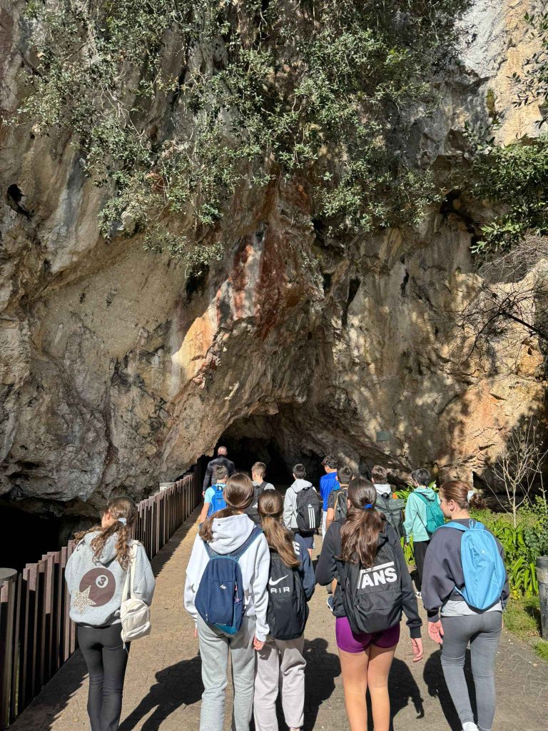 Después, llegó uno de los momentos más especiales del día: la visita a las Cuevas de Tito Bustillo y al Museo de Arte Rupestre. Allí, los alumnos pudieron conocer de cerca un entorno único y aprender sobre la historia y el arte de las cuevas, despertando su curiosidad mientras seguían inmersos en la experiencia.