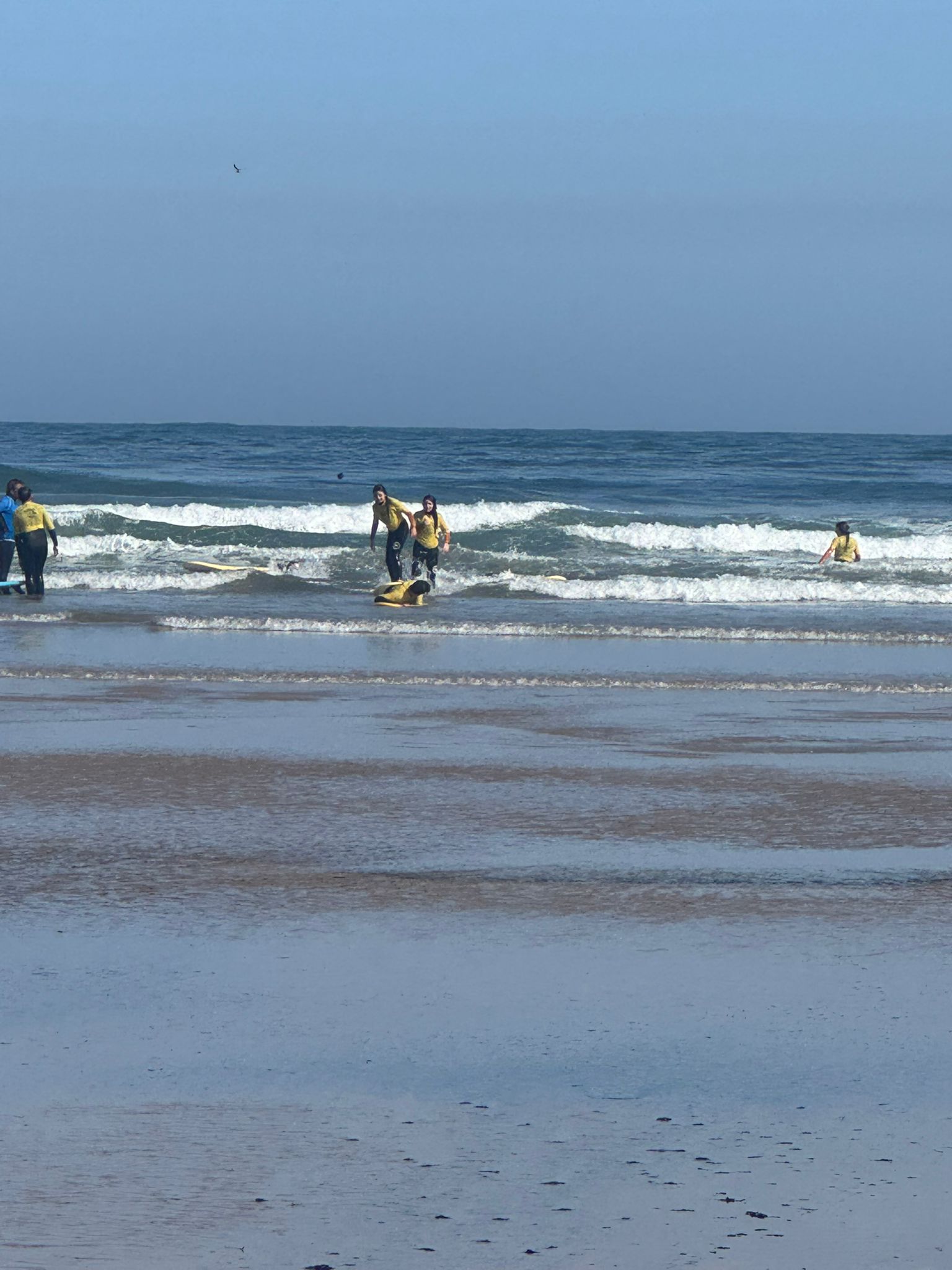 Comenzamos con la preparación, una explicación en seco y el momento (siempre divertido) de ponerse el neopreno. Y, poco después… llegamos a la playa.